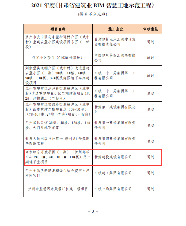 近日,甘肅省建筑業(yè)聯(lián)合會(huì)公布2021年甘肅省建設(shè)工程文明工地、綠色工地示范工程名單以及2021年度《甘肅省建筑業(yè)BIM+智慧工地示范工程》評(píng)選結(jié)果。經(jīng)過(guò)申報(bào)、初審、復(fù)查評(píng)價(jià)、公示等環(huán)節(jié),建設(shè)公司共計(jì)13個(gè)項(xiàng)目三榜有名,獲評(píng)省級(jí)文明工地、綠色工地示范工程、BIM+智慧工地示范工程。