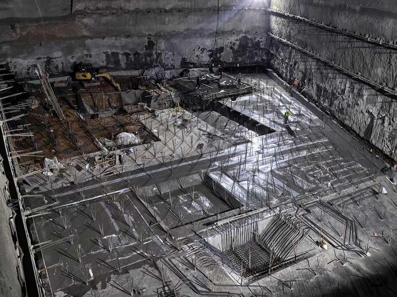 嚴(yán)絲合縫保質(zhì)量。在地下室防水施工區(qū),防水卷材鋪設(shè)同步全速推進(jìn)。施工班組采用“濕粘法”及“熱熔法”工藝,重點(diǎn)把控陰陽(yáng)角、后澆帶等關(guān)鍵部位,實(shí)施“鋪設(shè)-檢測(cè)-復(fù)驗(yàn)”閉環(huán)管理。項(xiàng)目總工帶隊(duì)開展夜間巡查,“必須要確保零空鼓、無(wú)滲漏,以‘毫米級(jí)’標(biāo)準(zhǔn)筑牢防水屏障,為建筑穿上‘金鐘罩’。”