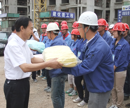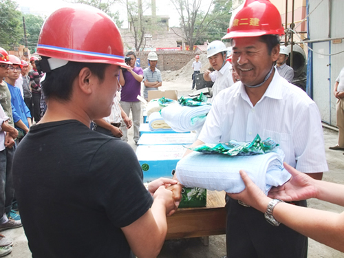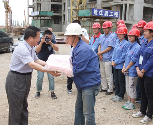“常言說建筑是凝固的詩,這詩是我們建筑工人揮灑著辛勤汗水的鏗鏘鳴唱!”甘肅建投黨委書記宋忠慶如實(shí)說。每到一處甘肅建投領(lǐng)導(dǎo)都向在酷暑中堅(jiān)守崗位的隊(duì)員們表示親切的慰問和真誠的感謝,并高度肯定了他們做出的巨大貢獻(xiàn)。甘肅建投正處在一個高速發(fā)展的時(shí)期,處在一個跨越發(fā)展的時(shí)期,認(rèn)為一線職工們?yōu)楦拭C經(jīng)濟(jì)及甘肅建投發(fā)展做出了建投人應(yīng)有的貢獻(xiàn)。