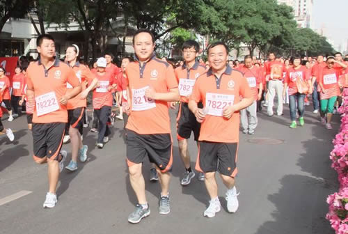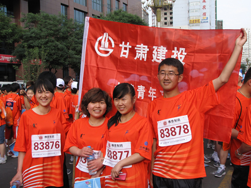 6點(diǎn)鐘,甘肅建投職工早已排成整齊的隊(duì)列在指定位置各就各位,隨著航拍飛機(jī)一次次在中心廣場(chǎng)上空盤旋,甘肅建投職工的歡呼聲響徹天地。專業(yè)運(yùn)動(dòng)員率先開(kāi)跑之后,甘肅建投代表隊(duì)處于眾多的方陣中的第二方陣,425名從集團(tuán)所屬各單位抽調(diào)的職工身穿印有“甘肅建投”字樣的運(yùn)動(dòng)服裝,30人一排,邁著強(qiáng)有力的步伐,進(jìn)行5公里迷你馬拉松的比賽,全體運(yùn)動(dòng)員互相幫助、互相扶持、互相激勵(lì),順利完成了賽程,到達(dá)終點(diǎn),體現(xiàn)了甘肅建投的團(tuán)隊(duì)精神。