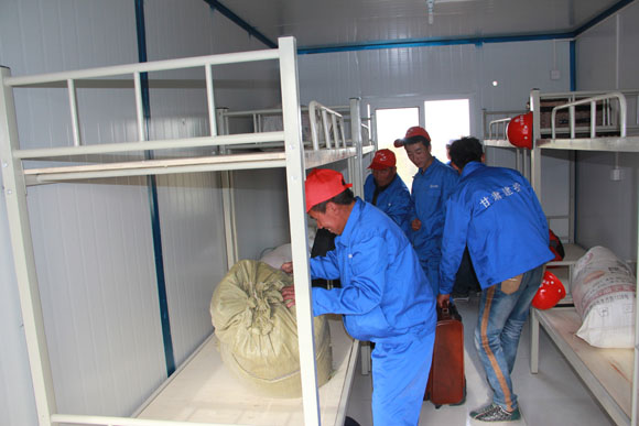 為了迎接遠到而來的新職工,白銀保障房項目部專門準備生活區(qū):兩排嶄新的彩板房,共十八間寬敞明亮的房間,可以供160人住宿。生活區(qū)內(nèi),食堂,衛(wèi)生間一應俱全。面、清油、鍋、爐子、醬油、醋、調(diào)料……,手上的清單面面俱到。考慮到務工人員來自不同民族,項目部特意認真準備了清真食品……