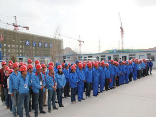 下午四點多,滿載新職工的大巴車終于到了目的地。五個多小時的車程,鄉(xiāng)親們絲毫沒有疲倦感。一下車,大家被塔吊林立,熱火朝天的建筑工地所吸引。經(jīng)過短暫的休整,在項目建設指揮部舉行了熱烈的歡迎儀式。穿戴上甘肅建投的工裝和安全帽,鄉(xiāng)親們的面貌一下發(fā)生了很大的變化。從這一刻開始,他們終于實現(xiàn)了當工人的愿望;也從這一刻開始,他們成為甘肅建投工人當中的一份子;從這里開始,他們將展現(xiàn)才華,通向脫貧致富的大道。