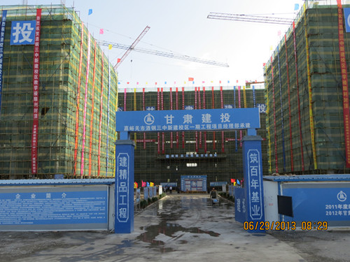 2013年6月29日,陽(yáng)光明媚,整個(gè)嘉峪關(guān)市南市區(qū)都充滿了喜氣洋洋的氣氛,在這美好的日子里,嘉峪關(guān)市酒鋼三中新建校區(qū)一期工程封頂儀式隆重舉行,前來(lái)參加儀式的人中有教育局的相關(guān)領(lǐng)導(dǎo)、酒鋼三中的領(lǐng)導(dǎo)、資深老教師以及與施工密切相關(guān)的各方代表近100人見(jiàn)證了這個(gè)激動(dòng)人心的時(shí)刻。