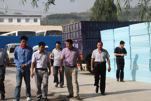 在生產(chǎn)車間,李鎖林詳細(xì)詢問與查看了生產(chǎn)規(guī)模、產(chǎn)能以及生產(chǎn)所需材料與設(shè)備尤其是電路設(shè)備了,并且仔細(xì)了解了廢品的二次利用及生產(chǎn)過程所中所需發(fā)泡劑的存放與添加環(huán)節(jié)流程。同時,李董事長饒有興致走進(jìn)員工宿舍、廚房等,與職工拉家長,共話企業(yè)發(fā)展;隨后,與保溫材料公司主要負(fù)責(zé)同志進(jìn)行了座談。