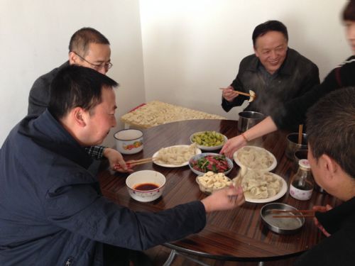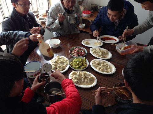 隨后,大家七手八腳,各顯神通的開始包餃子。經(jīng)過(guò)一上午的辛苦努力,一千多個(gè)待下鍋圓鼓鼓的餃子終于包好了,回頭看看所有人,哪個(gè)不是白頭粉面的,但是藏不住的喜悅卻一直掛在臉上。午飯時(shí)間,項(xiàng)目部的同志們聽說(shuō)包了熱騰騰的餃子,便一窩蜂涌向飯?zhí)?,大家?zhēng)先恐后的圍坐在飯桌前,大家顧不到欣賞,將各式各樣的餃子搶一個(gè)先塞進(jìn)嘴里,不時(shí)連連贊嘆:“好香!因?yàn)楣さ厝硕?,自開工以來(lái)還未吃過(guò)餃子,歡迎你們常來(lái)。”此時(shí)我們幾個(gè)人之前的辛苦便不是什么了。
