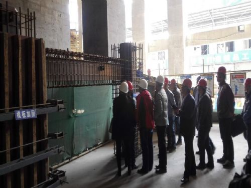 首先觀摩組認真聽取了該項目負責人對工程基本情況的介紹,同時還查看了各種業(yè)內(nèi)資料,隨后在項目部工作人員的帶領下來到施工現(xiàn)場對工程實體進行仔細觀摩,觀摩團隊在現(xiàn)場查看時與項目部管理人員進行了積極交流,并不時拿出紙筆和相機認真記錄,對各種施工工藝如鋼筋的綁扎,模板的支護,以及各洞口臨邊的安全防護、材料進出場的布局安排等方面做了詳細的詢問學習。