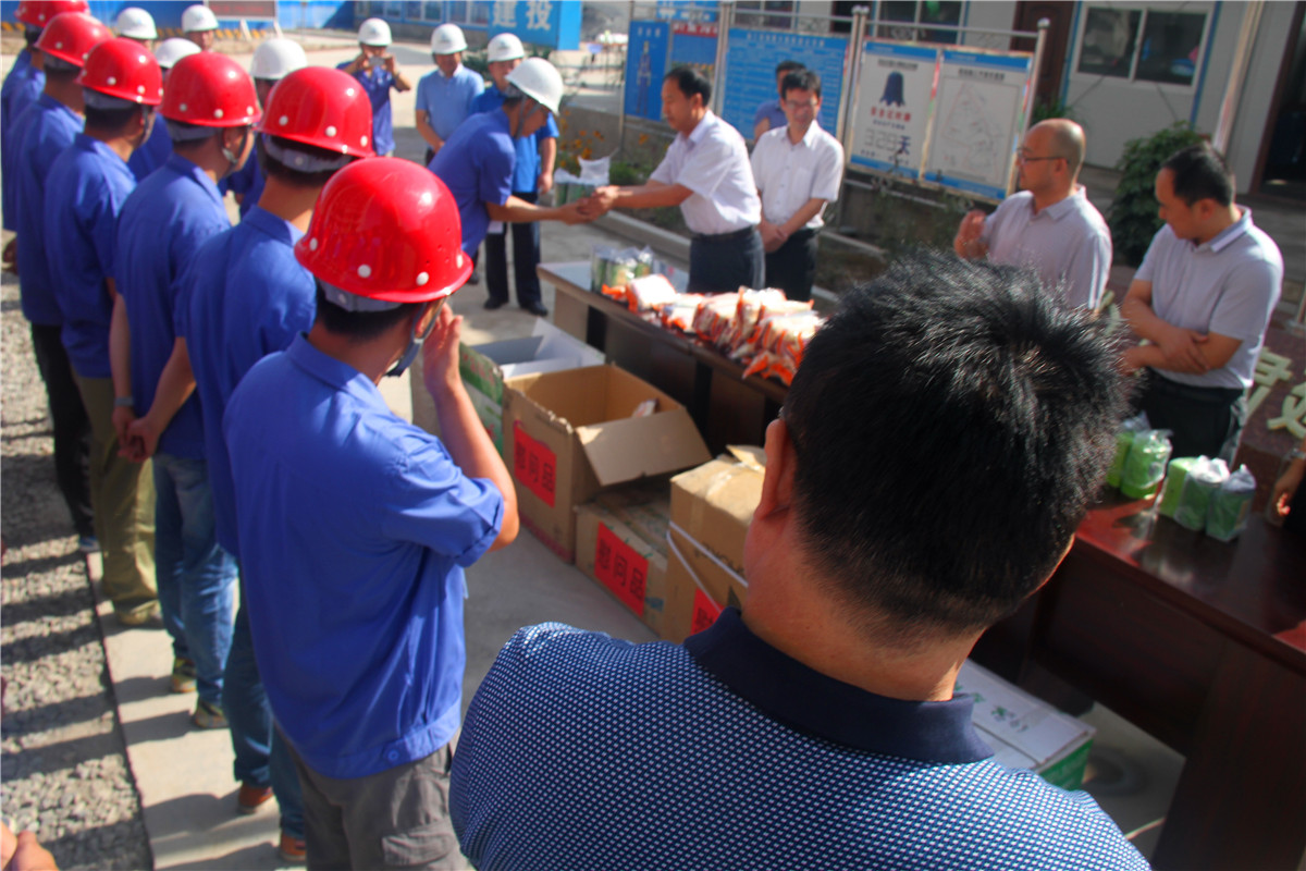 進(jìn)入7月份以來(lái),氣溫節(jié)節(jié)攀升,連續(xù)的高溫天氣深深牽動(dòng)著甘肅建投領(lǐng)導(dǎo)的心,他們時(shí)刻牽掛著奮戰(zhàn)在施工一線(xiàn)的工人。為了切實(shí)保證一線(xiàn)職工的健康權(quán)益,做好一線(xiàn)職工防暑降溫工作,7月27日上午,甘肅建投黨委副書(shū)記、紀(jì)委書(shū)記張育謙來(lái)到安寧公租房示范小區(qū)項(xiàng)目,將集團(tuán)總公司領(lǐng)導(dǎo)的關(guān)懷送到施工第一線(xiàn),看望奮戰(zhàn)在施工一線(xiàn)的工作人員。