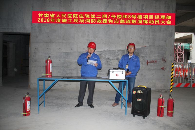 省人民醫(yī)院住院部二期7#、8#樓項(xiàng)目部 組織開展消防應(yīng)急救援演練