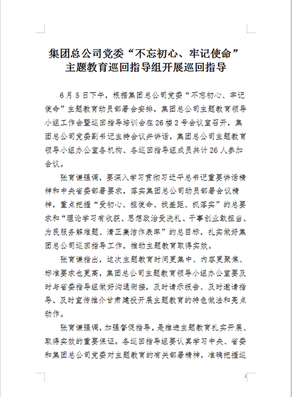 【不忘初心 牢記使命】集團總公司黨委“不忘初心、牢記使命” 主題教育巡回指導組開展巡回指導