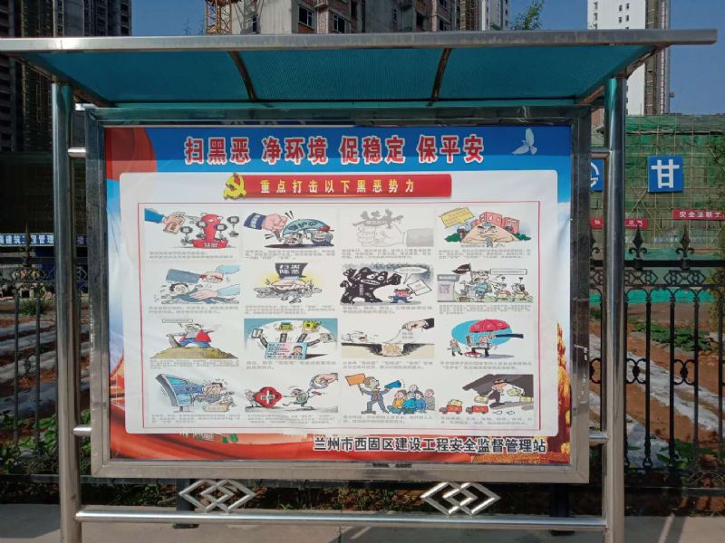 項(xiàng)目部也在工地現(xiàn)場(chǎng)設(shè)置展板、宣傳標(biāo)語,向項(xiàng)目部全體職工宣傳“掃黑除惡”的相關(guān)知識(shí),進(jìn)一步增強(qiáng)了項(xiàng)目部全員參與嚴(yán)打黑惡罪犯,弘揚(yáng)社會(huì)正氣,營(yíng)造和諧氛圍,共建平安工地的意識(shí)。