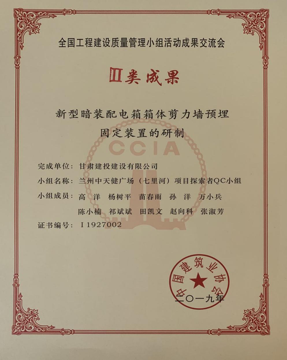 在此次現(xiàn)場發(fā)布會上,有近1500個來自全國各地的QC小組攜成果參加評選,建設(shè)公司代表“蘭州市中天健廣場(七里河)項目探索者QC小組” 參加了發(fā)布會。經(jīng)過為期兩天的現(xiàn)場發(fā)布、考核與評審最終脫穎而出,申報課題《新型暗裝配電箱箱體剪力墻預(yù)埋固定裝置的研制》獲得了較好的成績。