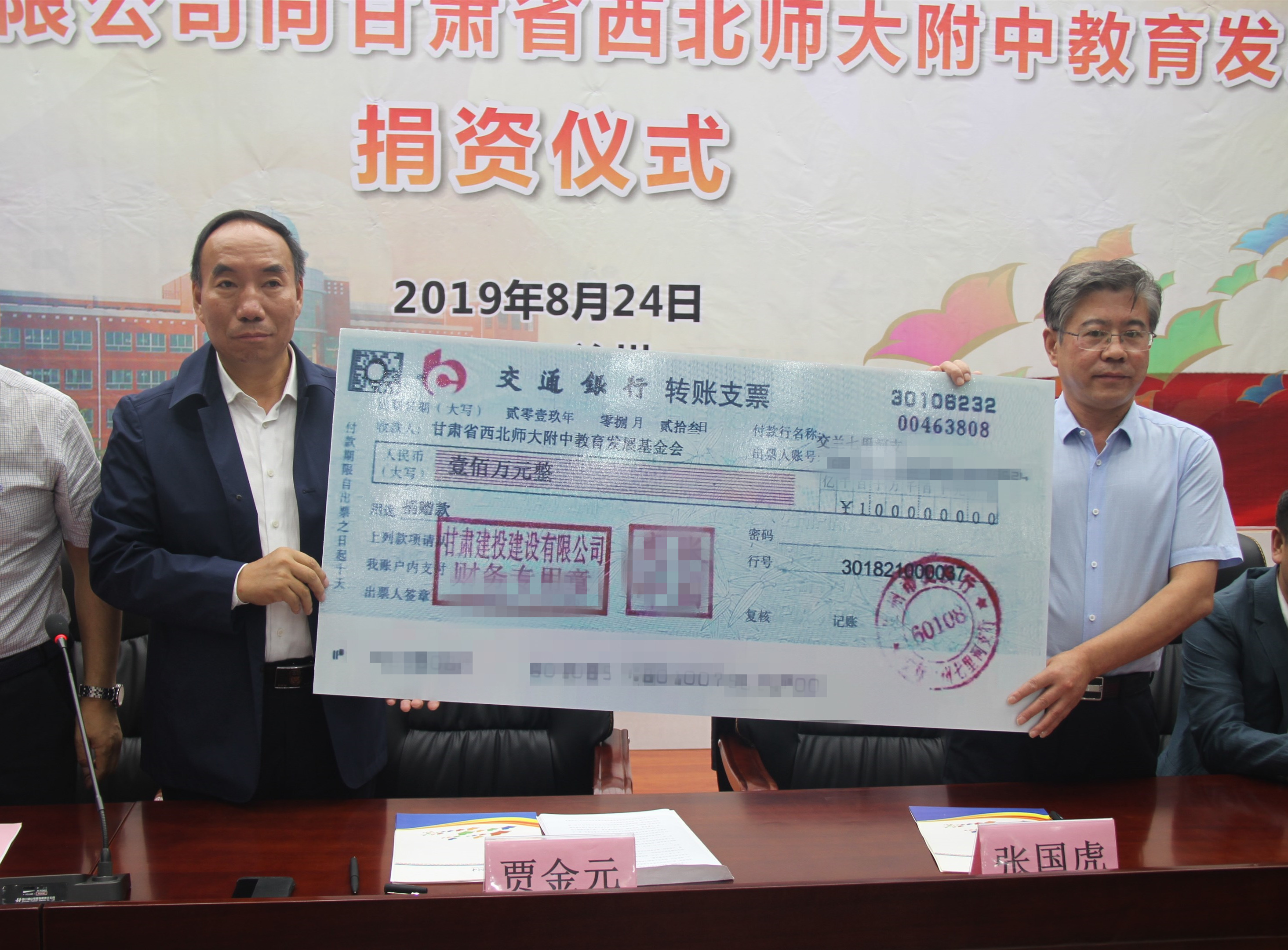 建設(shè)公司向甘肅省西北師大附中教育發(fā)展基金會捐資100萬元
