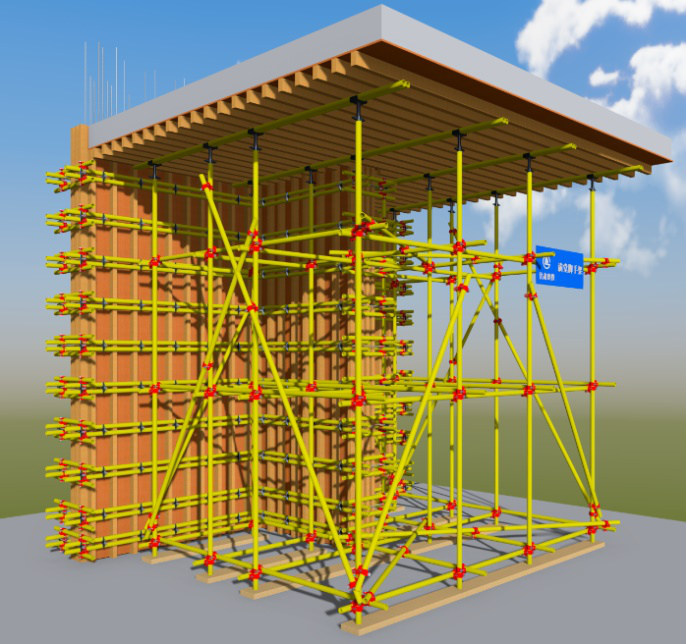 依據(jù)腳手架施工方案,創(chuàng)建腳手架BIM模型,對腳手架施工方案進行三維模擬,優(yōu)化支撐體系,確保支撐體系的強度、剛度、穩(wěn)定性。