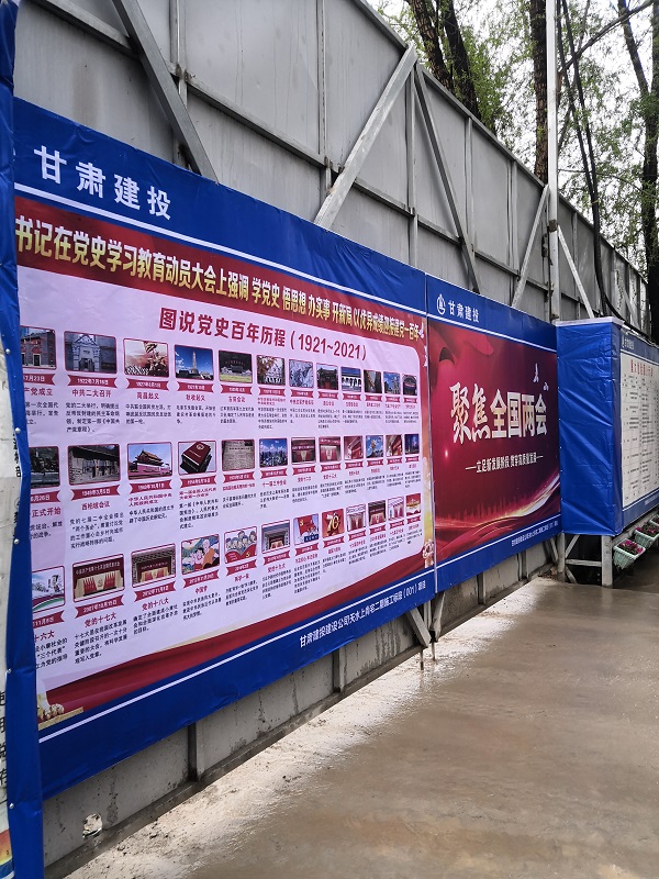 在天水上尚宅,桃李春風(fēng)康養(yǎng)小鎮(zhèn)等項(xiàng)目,六公司黨支部掛標(biāo)語、立展架,在項(xiàng)目一線營造黨史學(xué)習(xí)教育濃厚氛圍,推動黨史學(xué)習(xí)教育工作高質(zhì)量高標(biāo)準(zhǔn)開展,為項(xiàng)目建設(shè)匯聚強(qiáng)大的精神力量。