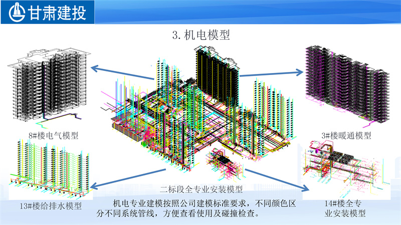BIM落地應(yīng)用,推動項目創(chuàng)優(yōu)。BIM技術(shù)應(yīng)用的落腳點在于為項目提質(zhì)創(chuàng)優(yōu)、降本增效。在建設(shè)公司應(yīng)用BIM技術(shù)的20個項目中,以榮獲甘肅建投第四屆BIM大賽二等獎的“楓林九溪”東區(qū)F地塊項目二標(biāo)段工程為例。該項目在BIM技術(shù)應(yīng)用過程中,項目部積極策劃,通過三維圖紙會審、機電管線綜合排布、暗配管線優(yōu)化、綜合支吊架設(shè)計、場地三維布置等14項基礎(chǔ)應(yīng)用和BIM+裝配式PC構(gòu)件、BIM+裝配式機房、BIM+鋁模優(yōu)化等5項創(chuàng)新應(yīng)用,提高了工程施工質(zhì)量,縮短了工期,同時取得了良好的經(jīng)濟效益和社會效益。