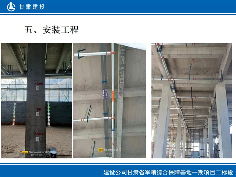 該工程位于甘肅省蘭州市榆中縣和平工業(yè)園區(qū)臥龍川產(chǎn)業(yè)園區(qū)內(nèi), 包括低溫成品庫、大米雜糧加工車間、一站式服務(wù)中心及標(biāo)準(zhǔn)化車間等6棟新建單體建筑。工程質(zhì)量管理目標(biāo)為:按照國家頒布的最新施工質(zhì)量驗(yàn)收規(guī)范執(zhí)行,達(dá)到國家驗(yàn)收“合格”標(biāo)準(zhǔn),爭創(chuàng) “飛天獎(jiǎng)”。項(xiàng)目工期緊、任務(wù)重,在施工工期、施工工序上有嚴(yán)格的要求,為保證人材機(jī)相互協(xié)作,公司選優(yōu)配強(qiáng)項(xiàng)目管理班子,項(xiàng)目部做好事前策劃,施工中加強(qiáng)整體調(diào)控,圓滿完成質(zhì)量及工期要求。項(xiàng)目管理團(tuán)隊(duì)在過程中嚴(yán)把工程質(zhì)量,管控施工安全,優(yōu)化施工方案,采用新工藝、新技術(shù)、新規(guī)范,在施工中嚴(yán)格執(zhí)行安全生產(chǎn)和質(zhì)量標(biāo)準(zhǔn)化管理要求,認(rèn)真落實(shí)“樣板引路”,以樣板指導(dǎo)施工。