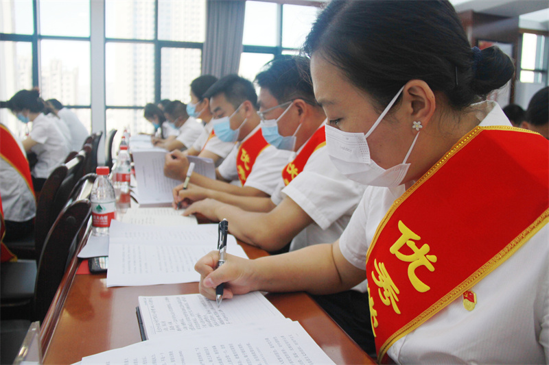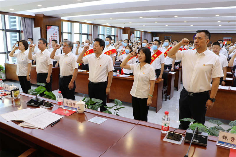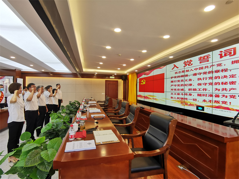 會(huì)上,在黨委書記、董事長張國虎的帶領(lǐng)下,全體黨員面向黨旗莊嚴(yán)宣誓——老黨員重溫入黨誓詞,新黨員進(jìn)行入黨宣誓。