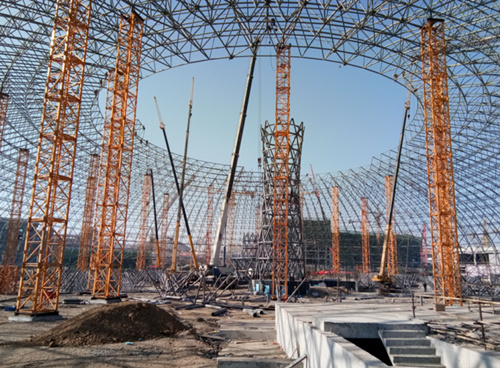 四是雙螺旋球網(wǎng)架的整體吊裝、整體拼接法施工工藝采用整體吊裝、整體拼接極大的解決了鋼結(jié)構(gòu)的安裝時間成本。