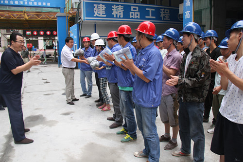 在放完慰問品后,李董事長親切地詢問了工程的進(jìn)度情況,并對項(xiàng)目在建情況進(jìn)行了實(shí)地檢查,聽到甘肅建投3#綜合樓已申報(bào)國家AAA級(jí)誠信化標(biāo)準(zhǔn)工地時(shí),他說:一定要有重視、抓落實(shí),現(xiàn)場的實(shí)際情況較國家AAA級(jí)誠信標(biāo)準(zhǔn)化工地的評(píng)比標(biāo)準(zhǔn)還有些差距,在今后的工作中還需繼續(xù)努力,力爭取得榮譽(yù)。