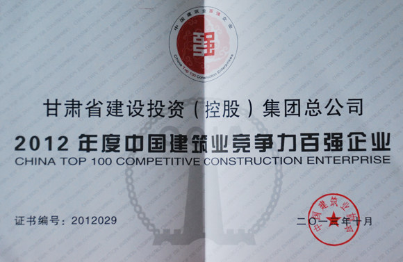甘肅建投再獲中國建筑業(yè)競爭力百強(qiáng)企業(yè)