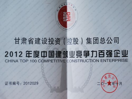 近日,中國建筑業(yè)協(xié)會在廈門召開2012年度中國建筑業(yè)雙百強(qiáng)(競爭力百強(qiáng)和成長性百強(qiáng))企業(yè)發(fā)布會。甘肅建投榮登中國建筑業(yè)競爭力百強(qiáng)企業(yè)第29位,居于全國同行企業(yè)前列。這也是2013年甘肅建投繼蟬聯(lián)中國企業(yè)500強(qiáng)后,斬獲的又一殊榮。