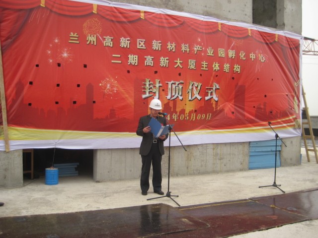 上午10:58分時許,前來參加封頂儀式的有關(guān)領(lǐng)導(dǎo)沿著紅地毯緩緩步入會場,儀式在歡快的音樂聲中正式開始,蘭州普禾醫(yī)藥有限公司總經(jīng)理郝清風(fēng)致開幕詞,甘肅建投總公司黨委書記張國虎作了致辭。在談到項目建設(shè)時,他說,甘肅建投公司以造“一流工程、精品工程”為己任,秉著“銳意進(jìn)取、追求卓越”的企業(yè)精神,贏得了效益和口碑雙豐收。同時,對于此次高新大廈辦公樓的順利封頂,建設(shè)單位高度肯定了我項目部的傾力支持和無私奉獻(xiàn),并且表達(dá)了希望雙方加強后續(xù)合作,共生共榮。