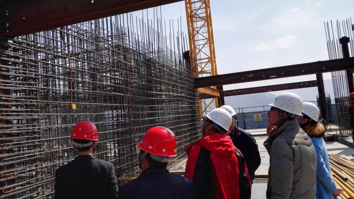 首先觀摩組認真聽取了該項目負責人對工程基本情況的介紹,同時還查看了各種業(yè)內(nèi)資料,隨后在項目部工作人員的帶領下來到施工現(xiàn)場對工程實體進行仔細觀摩,觀摩團隊在現(xiàn)場查看時與項目部管理人員進行了積極交流,并不時拿出紙筆和相機認真記錄,對各種施工工藝如鋼筋的綁扎,模板的支護,以及各洞口臨邊的安全防護、材料進出場的布局安排等方面做了詳細的詢問學習。