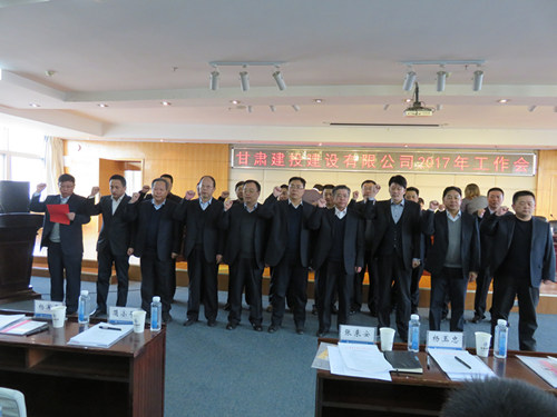 在會上,建設(shè)公司19名處級干部進(jìn)行了集體廉政宣誓隨后進(jìn)行了勤政廉政民主測評,黨委書記張國虎代表公司領(lǐng)導(dǎo)班子作了《2017年工作會議報告》,同時,公司領(lǐng)導(dǎo)分別與基層各單位負(fù)責(zé)人簽訂了2017年度建設(shè)公司經(jīng)營、黨建、黨風(fēng)廉潔建設(shè)等目標(biāo)責(zé)任書。最后,會議表彰了2016年各類先進(jìn)單位和個人。