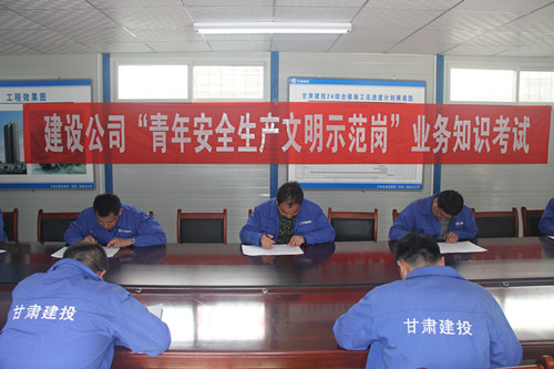為檢驗冬休培訓成果,督促項目部青年管理人員認真學習施工規(guī)范,提高安全生產(chǎn)管理水平,3月28日下午,建設公司在甘肅建投2#綜合樓項目部組織青年管理人員進行“青年安全生產(chǎn)文明示范崗”業(yè)務知識考試。