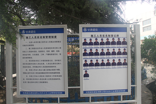 根據(jù)該工程項目確保“天水市文明工地”、“甘肅省省級文明工地”的目標計劃,項目部編制了具有針對性的、符合現(xiàn)場實際的文明施工規(guī)劃,確定文明施工標準。生產(chǎn)區(qū)、辦公區(qū)、生活區(qū)平面等布置,材料加工與堆放嚴格按施工現(xiàn)場文明施工規(guī)劃圖實施。同時結(jié)合項目部實際嚴格落實甘肅建投企業(yè)“VIS”視覺識別系統(tǒng),對門頭、企業(yè)宣傳用語、宣傳欄、管理人員和作業(yè)人員工作服、安全帽、胸牌,辦公用品等都進行了統(tǒng)一規(guī)范。