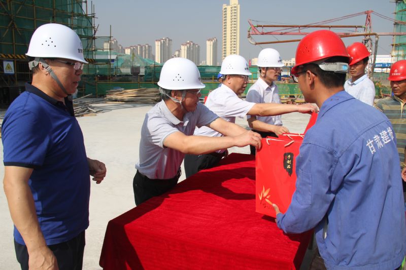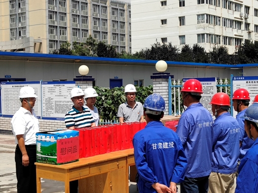 在安寧區(qū)蘭飛棚戶區(qū)改造86#住宅樓項(xiàng)目部和蘭州新區(qū)工業(yè)學(xué)院項(xiàng)目部,黨委副書記、紀(jì)委書記、工會(huì)主席芮劍鋒向奮戰(zhàn)在施工一線的廣大職工表達(dá)了公司領(lǐng)導(dǎo)的關(guān)心并向他們表示衷心的感謝,他要求項(xiàng)目部要做好食堂的飲食衛(wèi)生和防暑降溫、疾病防疫等工作,在施工現(xiàn)場(chǎng)按照公司規(guī)定配備安全生產(chǎn)和職業(yè)防護(hù)設(shè)施,加大防暑降溫和中暑急救知識(shí)的宣傳教育,確保作業(yè)人員的身體健康和安全施工。