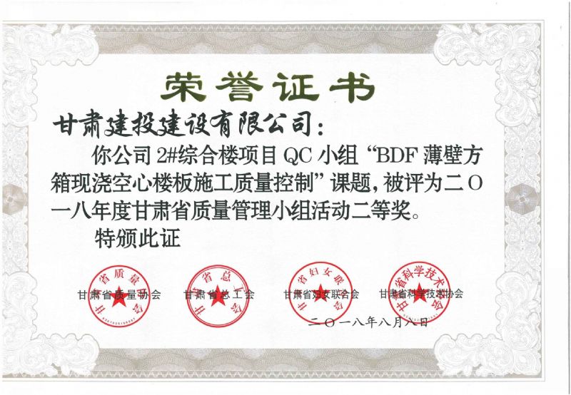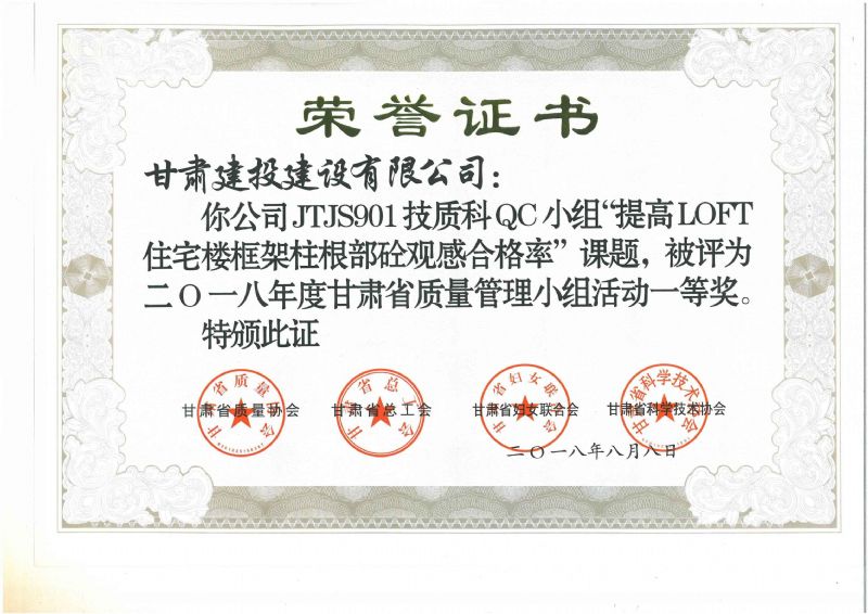 近日,甘肅省第38次質(zhì)量管理小組代表會(huì)在臨夏州永靖古城新區(qū)落下帷幕。從會(huì)上獲悉,甘肅建投建設(shè)有限公司取得2個(gè)QC成果一等獎(jiǎng),1個(gè)QC成果二等獎(jiǎng)的好成績(jī)。