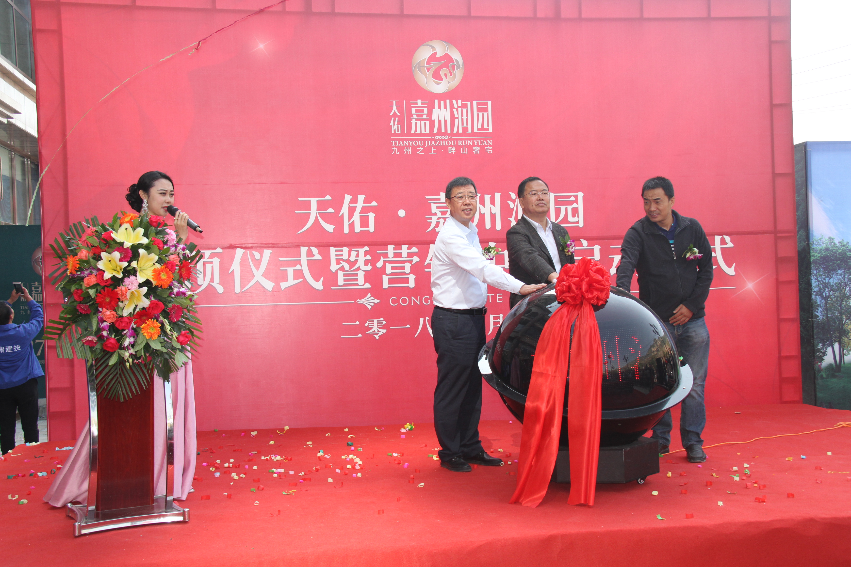封頂儀式最后,芮劍鋒與甘肅天健實業(yè)有限公司董事長楊君才、蘭州濱河監(jiān)理有限責(zé)任公司總監(jiān)理工程師封維全共同按下啟動球,標(biāo)志著天佑•嘉州潤園項目隆重開盤。