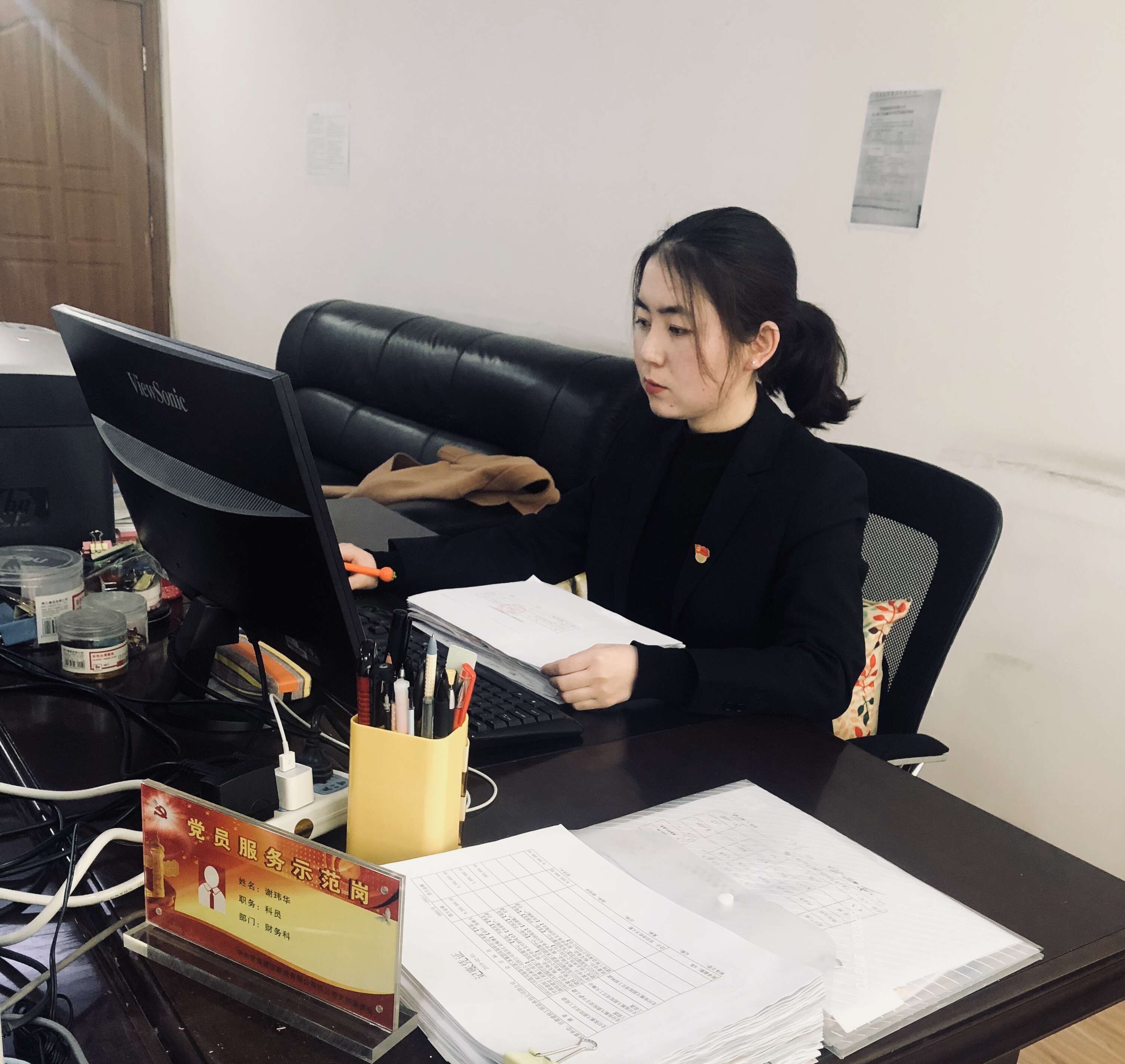 從參加工作以來,她堅持用合格黨員的標準嚴格要求自己,自覺接受黨員和同事們的監(jiān)督和幫助,堅持不懈地克服自身的缺點,彌補自己的不足。作為四公司出納,面對日常繁雜的各項工作,謝瑋華始終保持嚴謹認真的工作態(tài)度和一絲不茍的工作作風,不懼辛苦,知難而上,每當公司有什么棘手的問題時,她總是沖在最前面,絲毫不亞于公司的其他男同事。她常常提醒自己,要從做好本職工作和日常工作入手,從自身做起,從現(xiàn)在做起,從身邊小事做起并持之以恒,在本職工作中盡心盡力,孜孜不倦地作出成績,在自己的崗位上不斷的提高自己的崗位本領,努力學習相關財務知識,這樣才能更加從容的完成各項工作任務。