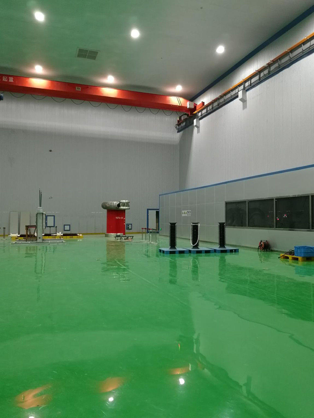 高壓屏蔽試驗大廳地坪配雙層雙向鋼筋網(wǎng),鋼筋網(wǎng)采用點焊,直螺紋套筒連接、鋼筋間距密,焊接工程量大,混凝土中不能有金屬顆粒。鋼筋網(wǎng)片點焊時,使用二氧化碳?xì)怏w保護(hù)焊,既保證了焊接質(zhì)量,又加快了焊接進(jìn)度,且不會產(chǎn)生焊條頭等垃圾。焊接時在試驗大廳安裝軸流風(fēng)機換風(fēng),確??諝饬魍?,防止試驗大廳內(nèi)缺氧。焊接完成后,將地面的焊渣用吸塵器徹底清理,確保沒有金屬顆粒。