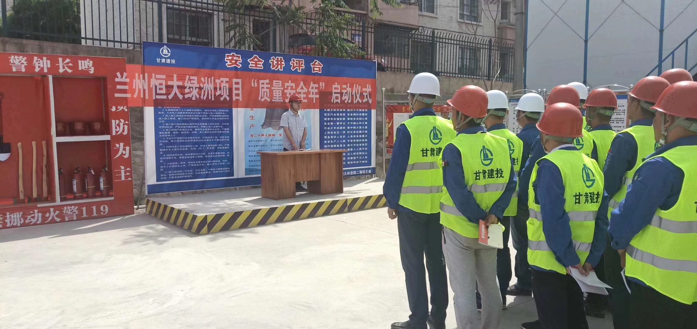 為積極響應(yīng)建設(shè)公司年度安全生產(chǎn)月活動(dòng)安排,進(jìn)一步增強(qiáng)項(xiàng)目部全員安全生產(chǎn)責(zé)任意識(shí),夯實(shí)安全生產(chǎn)思想基礎(chǔ),促進(jìn)安全生產(chǎn)形勢持續(xù)穩(wěn)定發(fā)展,九公司蘭州恒大綠洲林語郡二期項(xiàng)目部召開了“質(zhì)量安全年” 啟動(dòng)儀式動(dòng)員大會(huì)。蘭州恒大綠洲項(xiàng)目部全體管理人員、勞務(wù)管理人員、工人代表等參加了此次活動(dòng)。